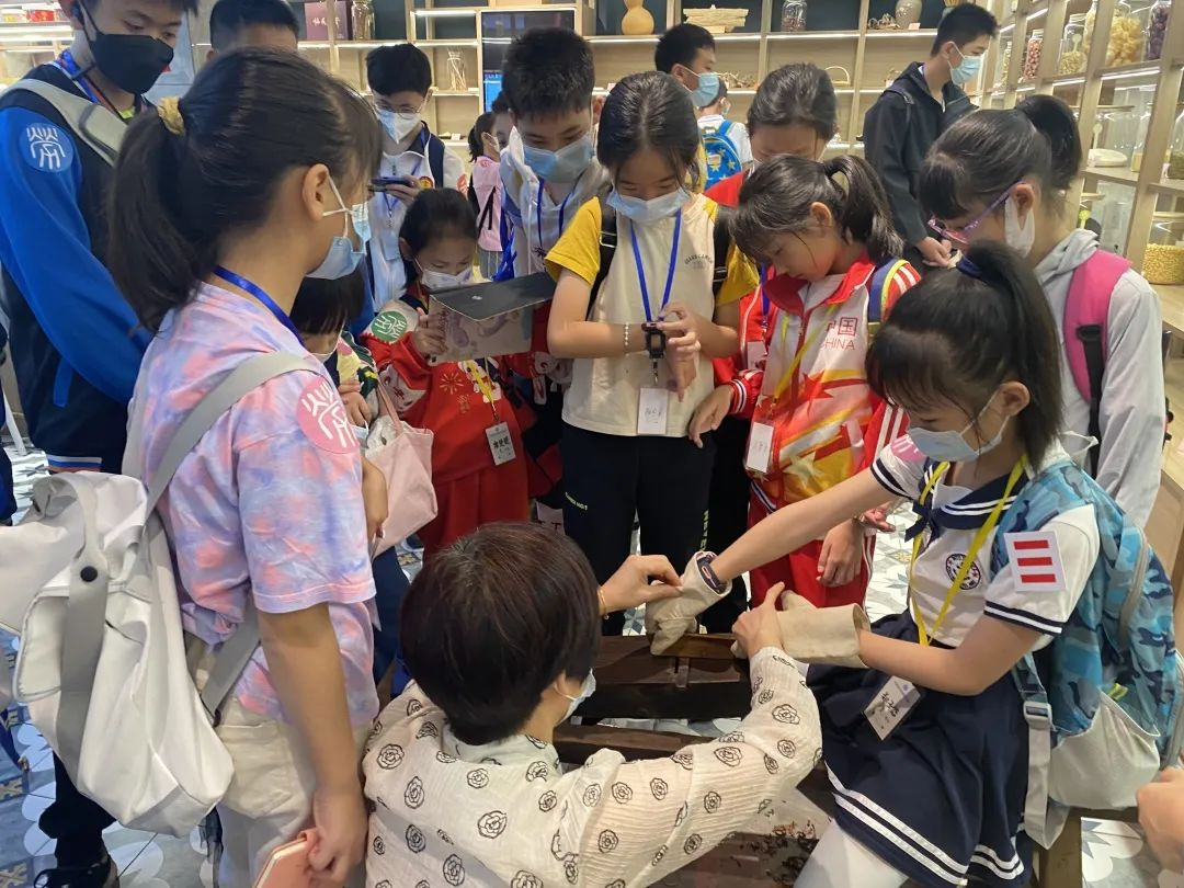 研学团参观采芝林中药非遗文化体验馆,体验传统技艺