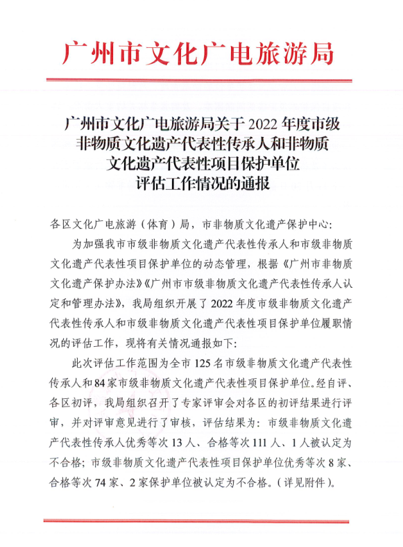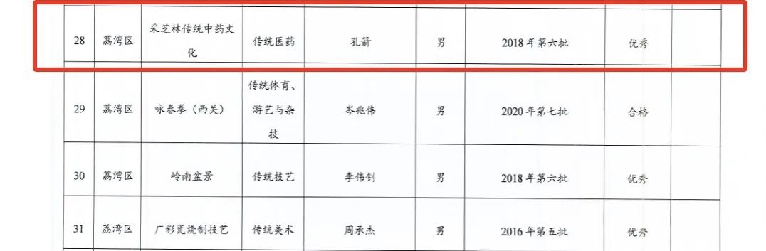 近日,广州市文化广电旅游局公布了《广州市文化广电旅游局关于2022年度市级非物质文化遗产代表性传承人和非物质文化遗产代表性项目保护单位评估工作情况的通报》。在本次评估工作中,共有125名市级非遗代表性传承人参评,经综合评审,最终仅有13名市级非遗代表性传承人被评为“优秀”等次,采芝林传统中药文化市级传承人孔箭名列其中。