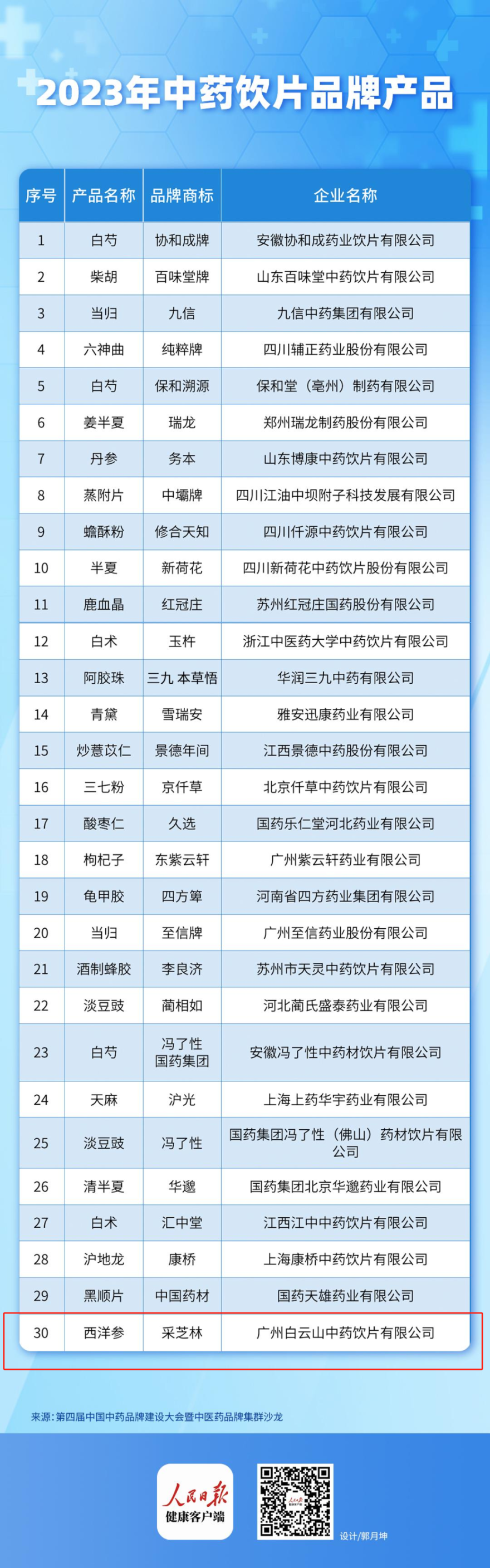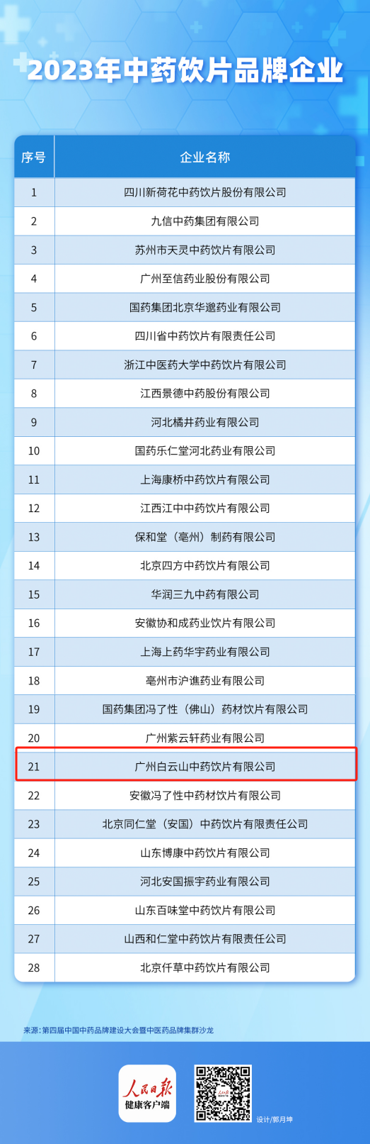 广州白云山中药饮片有限公司荣登2023年中药饮片品牌企业榜