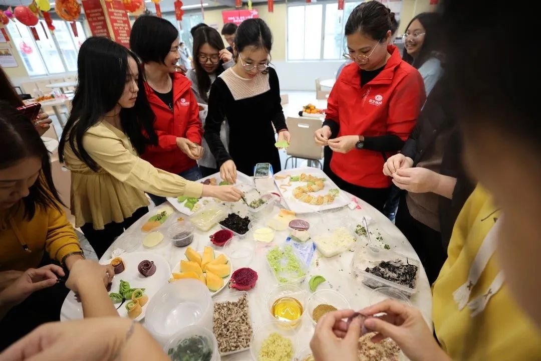 饺子是我国的传统美食,寓意有“喜庆团圆”和“吉祥如意”的意思,此次活动以团体合作形式进行现场包饺子,把不同肉馅、饺子皮等食材包成各具“特色”的饺子,并用其进行造型摆盘