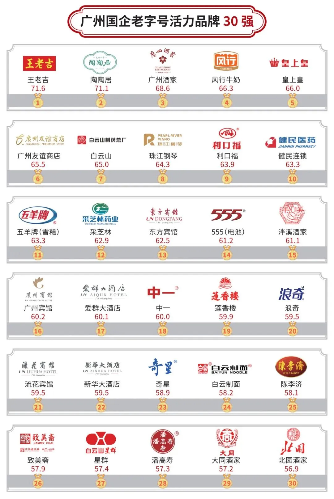 广州国企老字号活力品牌30强(图片来源:广州国资)