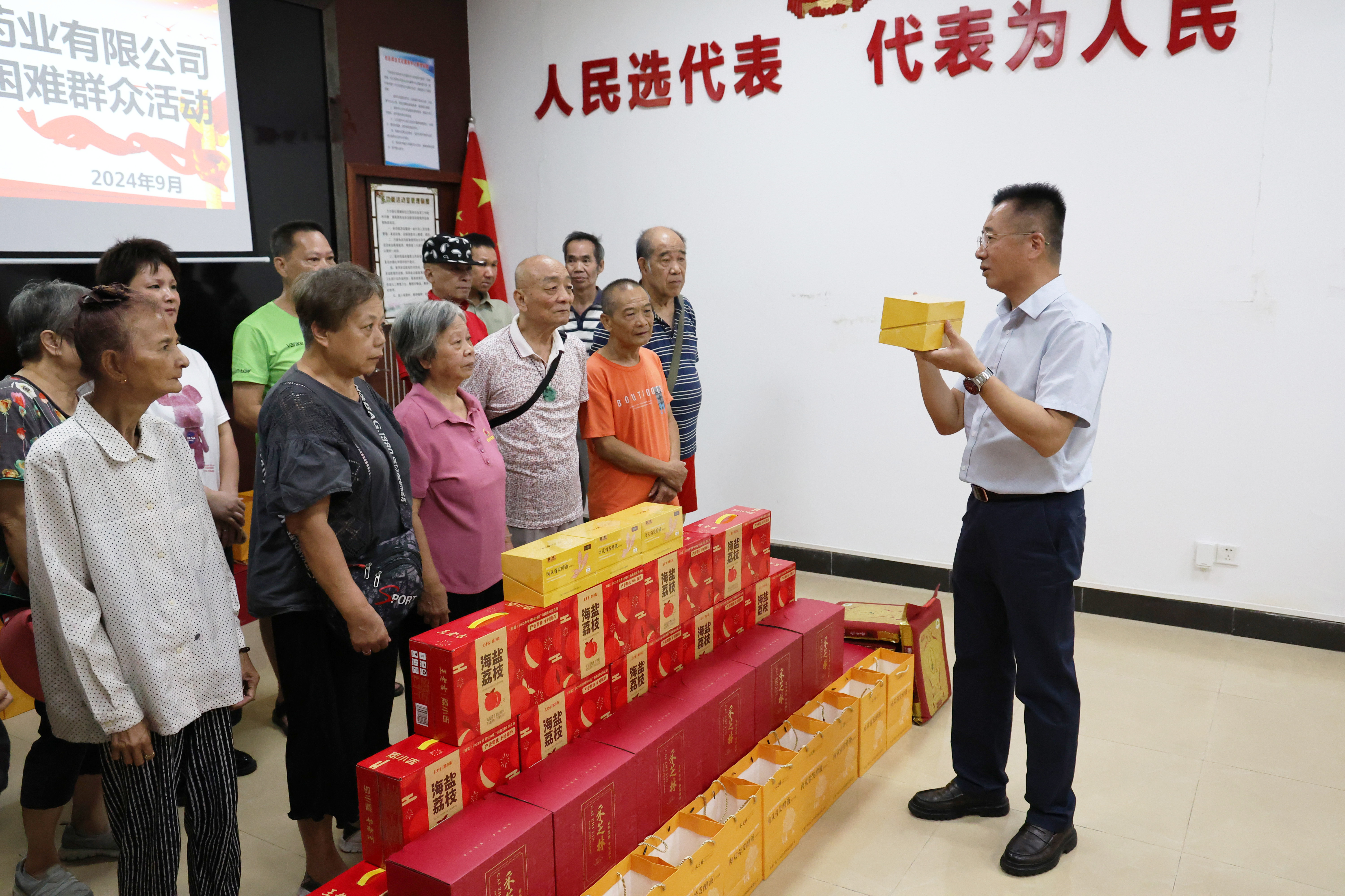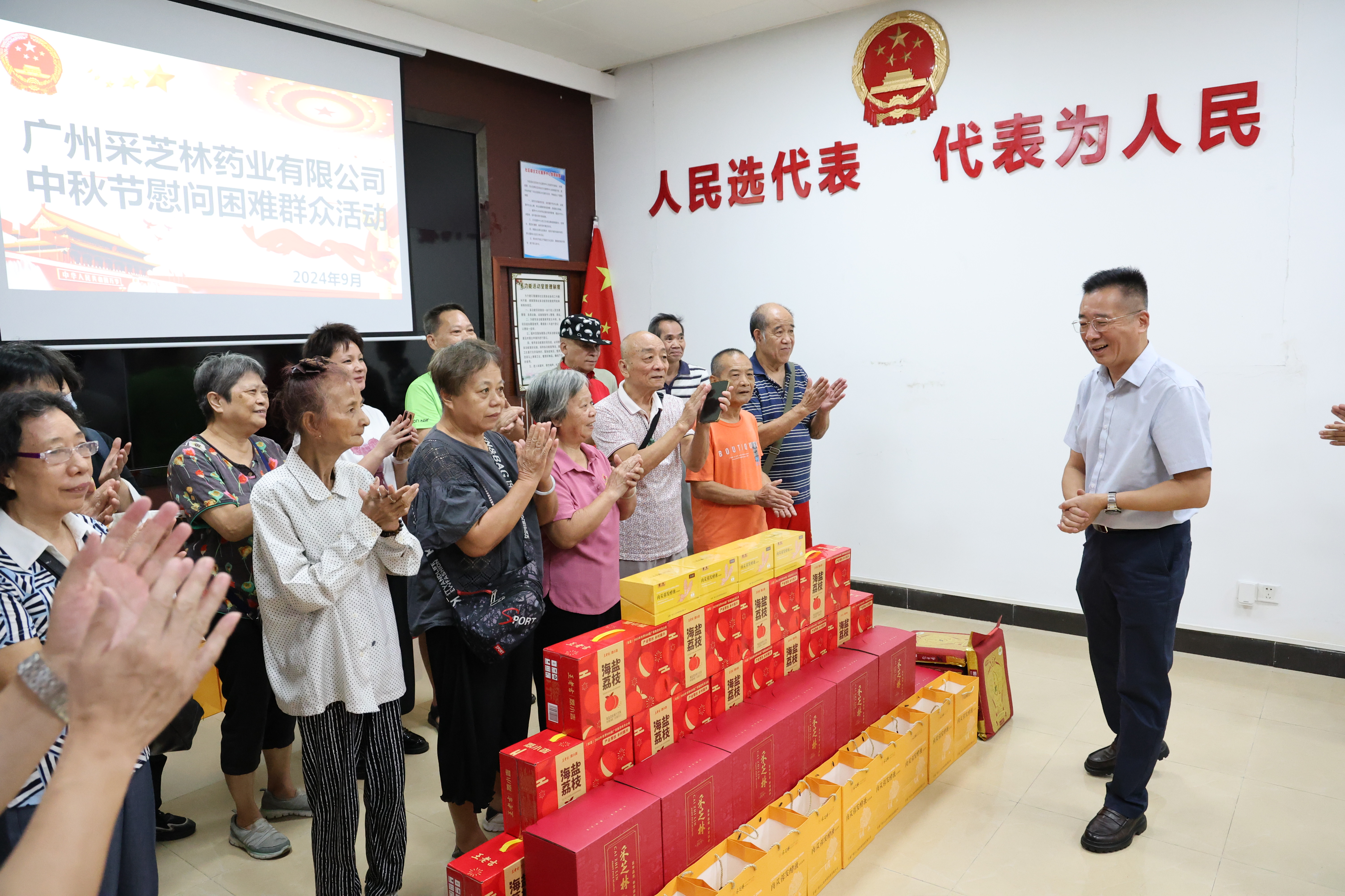 为充分发挥人大代表紧密联系群众的桥梁和纽带作用,9月5日,荔湾区人大代表、采芝林药业党委书记、董事长孔箭到石围塘街道芳雅苑社区开展中秋节慰问群众家庭,并送上节日的祝福和问候。