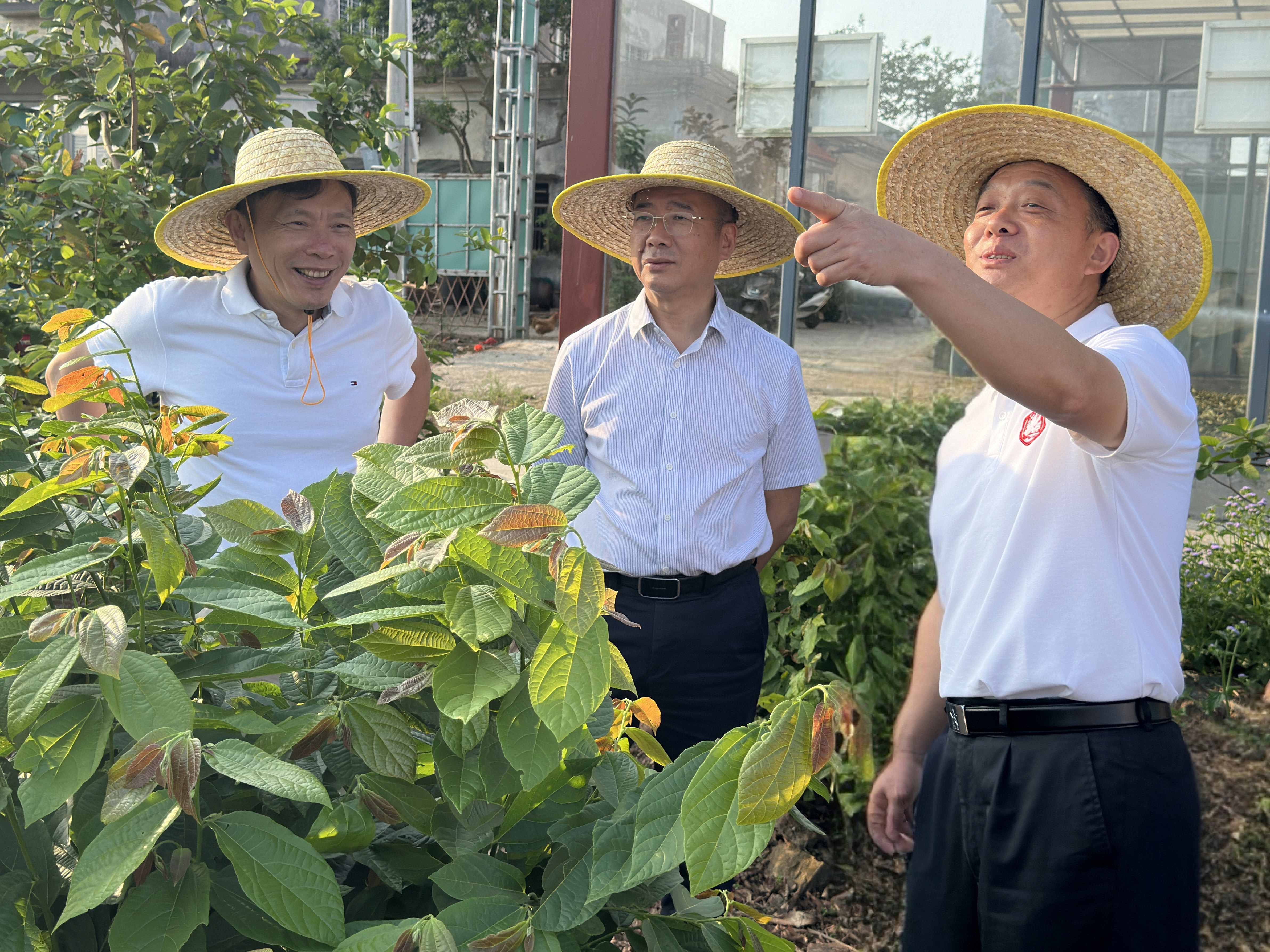 孔箭与蔡志伟查看布渣叶长势