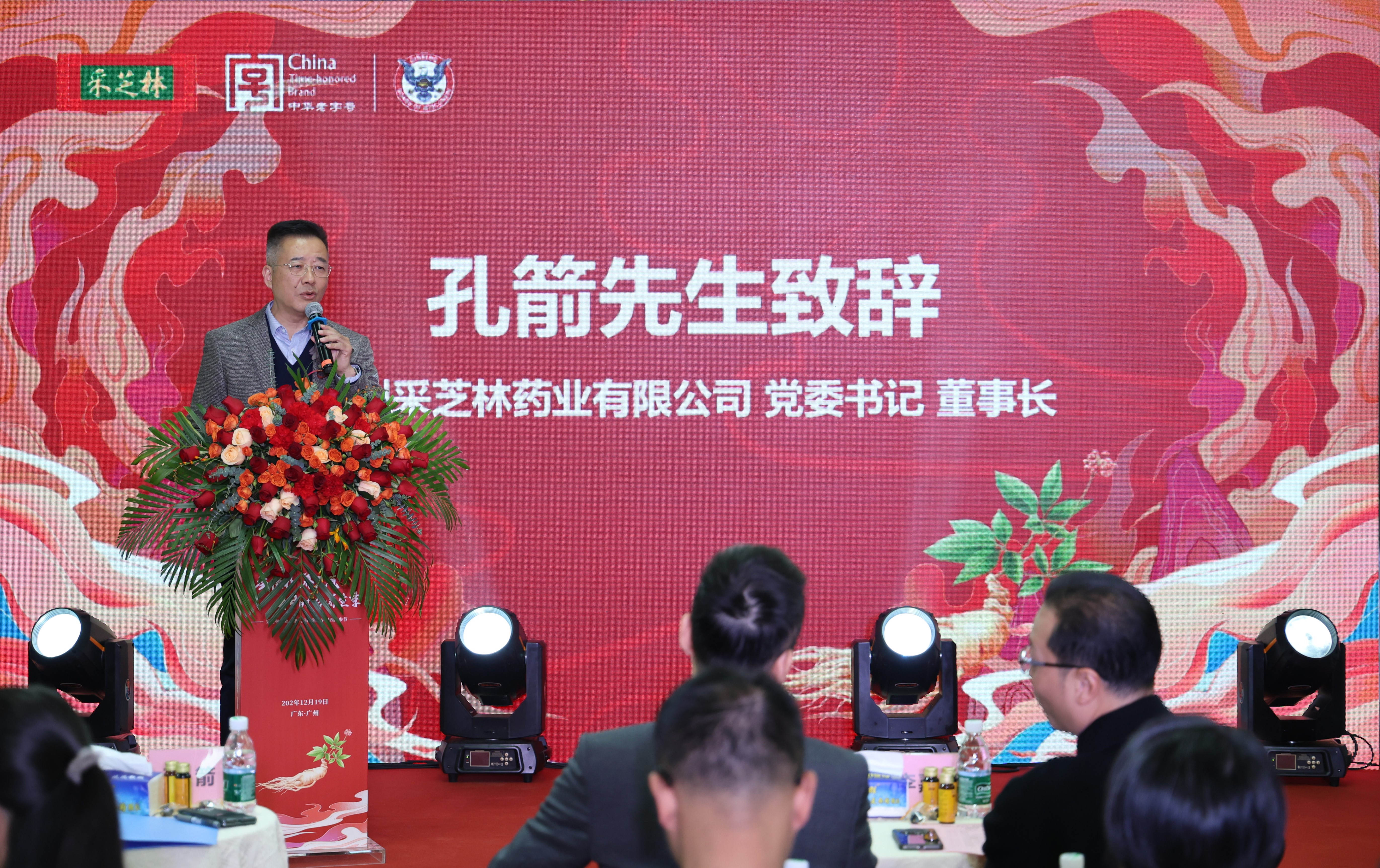广州白云山医药集团股份有限公司副总经理、广州医药股份有限公司党委书记、董事长郑坚雄,北京街党工委书记李嘉斌,街道办副主任洪默然,采芝林药业党委书记、董事长孔箭,党委副书记、工会主席蔡志伟,纪委书记林挺,副总经理魏丽君,广东省中医院主任医师,美国威斯康辛州花旗参农业总会品牌宣传大使范大勇等领导嘉宾出席并参加西洋参节。