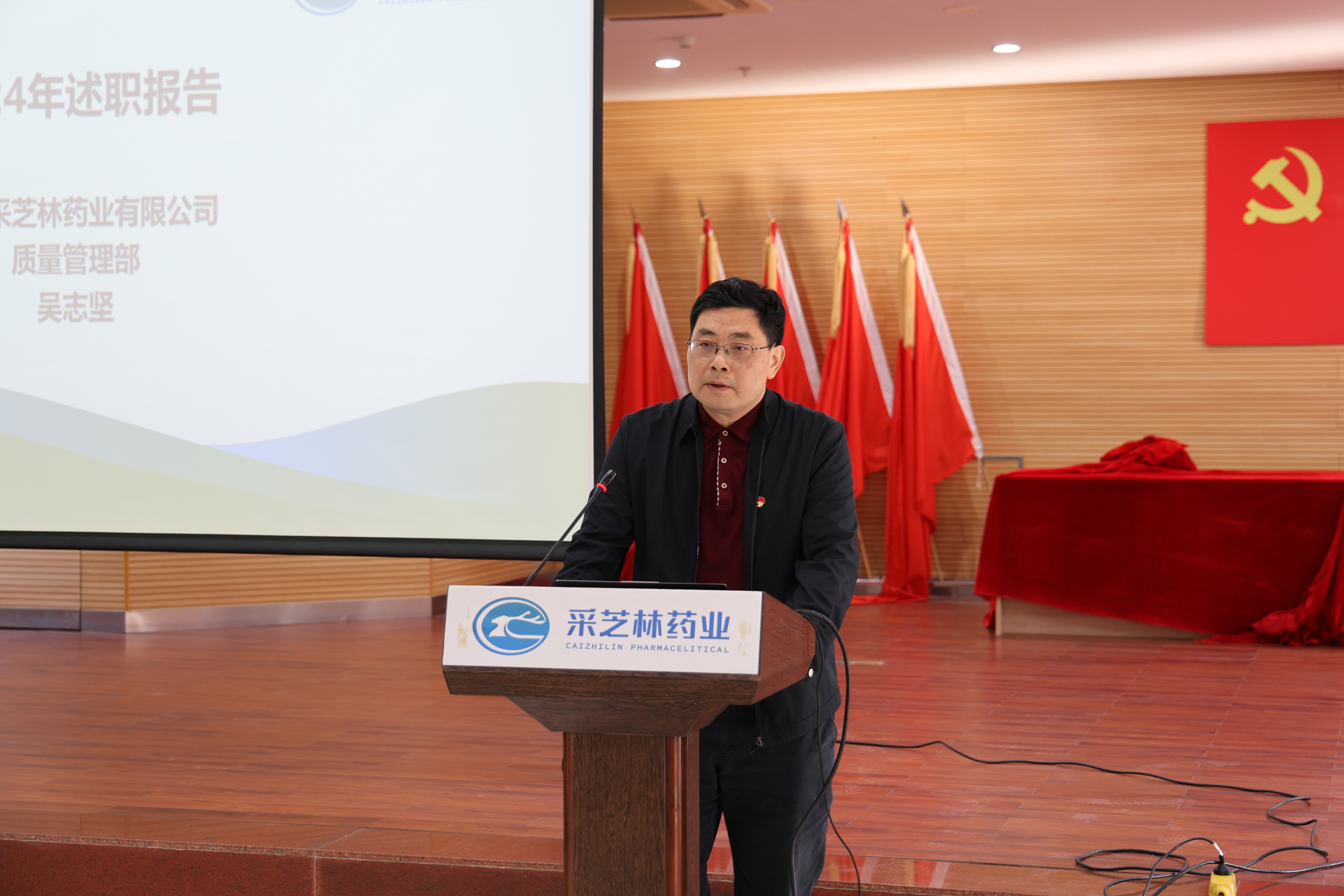 采芝林药业党委副书记、工会主席蔡志伟代表公司党委首先对大家在过去一年里的辛勤付出表示了由衷的感谢,并对述职中展现出的亮点和创新给予了充分肯定。他强调,面对日新月异的市场环境和公司不断发展的需求,作为公司的中层干部要始终保持坚定的步伐和昂扬的斗志,为公司的稳定发展奠定坚实的基础。同时,他还鼓励与会人员在新的一年里继续努力,不断提升自我,为采芝林药业高质量发展贡献更多智慧和力量。