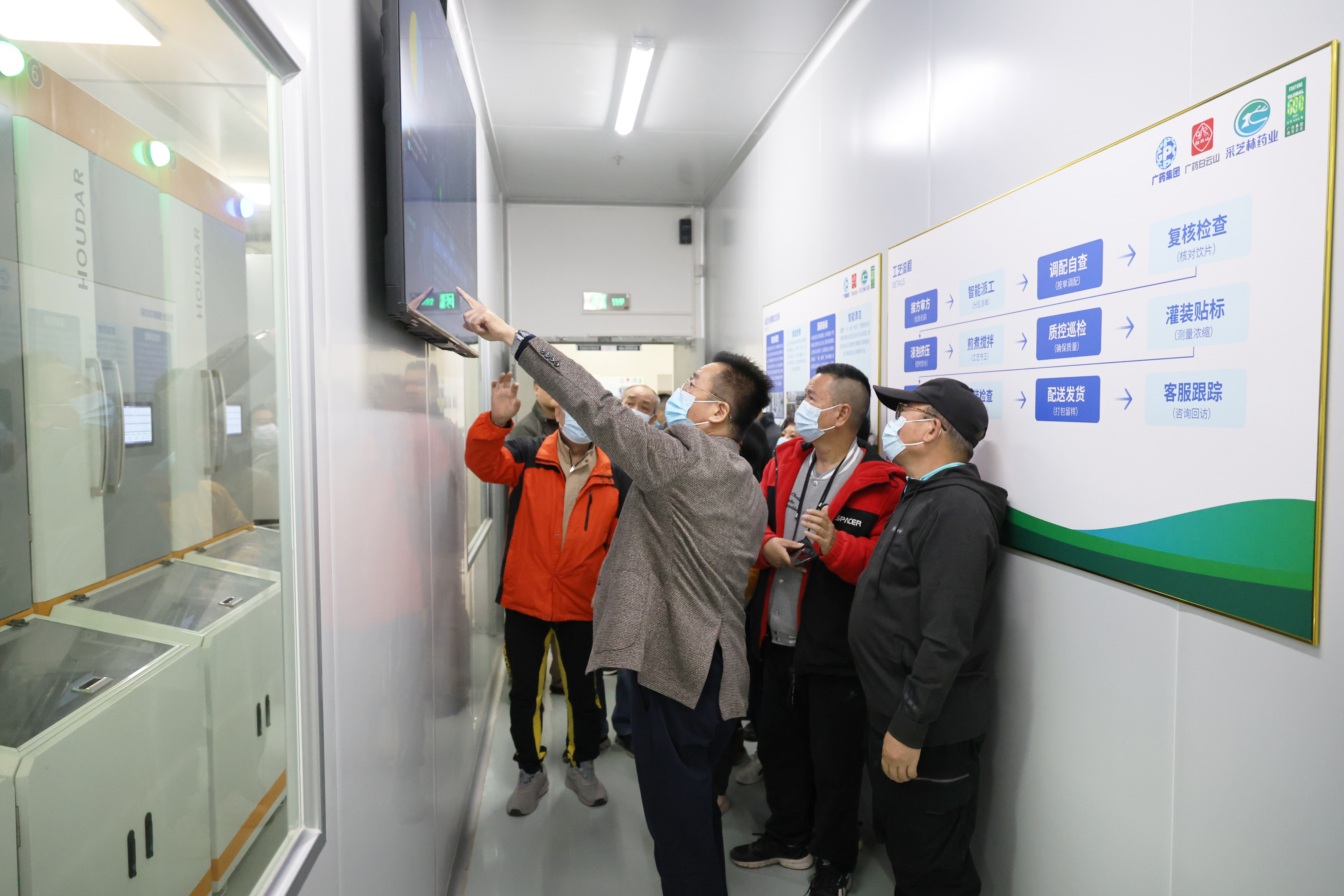 此次邀请,是孔箭在2024年初慰问石围塘街道芳雅苑社区对居民许下的承诺。如今,一年过去了,采芝林园区迎来新变化,升级改造后的广药采芝林智慧药房实现了自动化、智能化,只需在小程序轻轻一点,代煎药液信息便一目了然,煎煮流程的各个环节尽在掌心掌控之中。