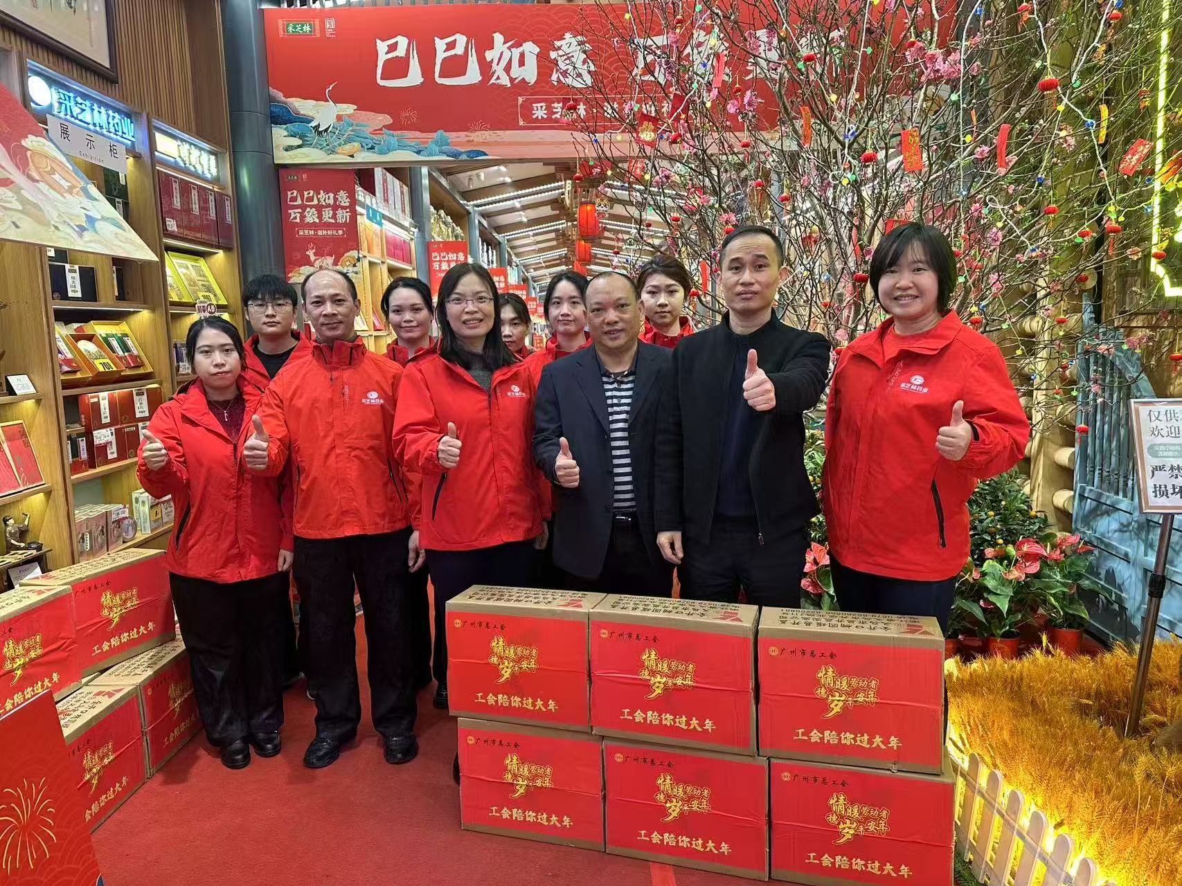 正值阖家团圆之时,老智聪一行在采芝林国医馆副总经理黎婉杭、党支部书记何丽君陪同下,为国医馆北京路门店一线职工送上新春慰问礼包,祝福大家在新的一年里巳巳如意、福禄安康,并祝愿采芝林国医馆蛇年吉祥,生意兴隆!