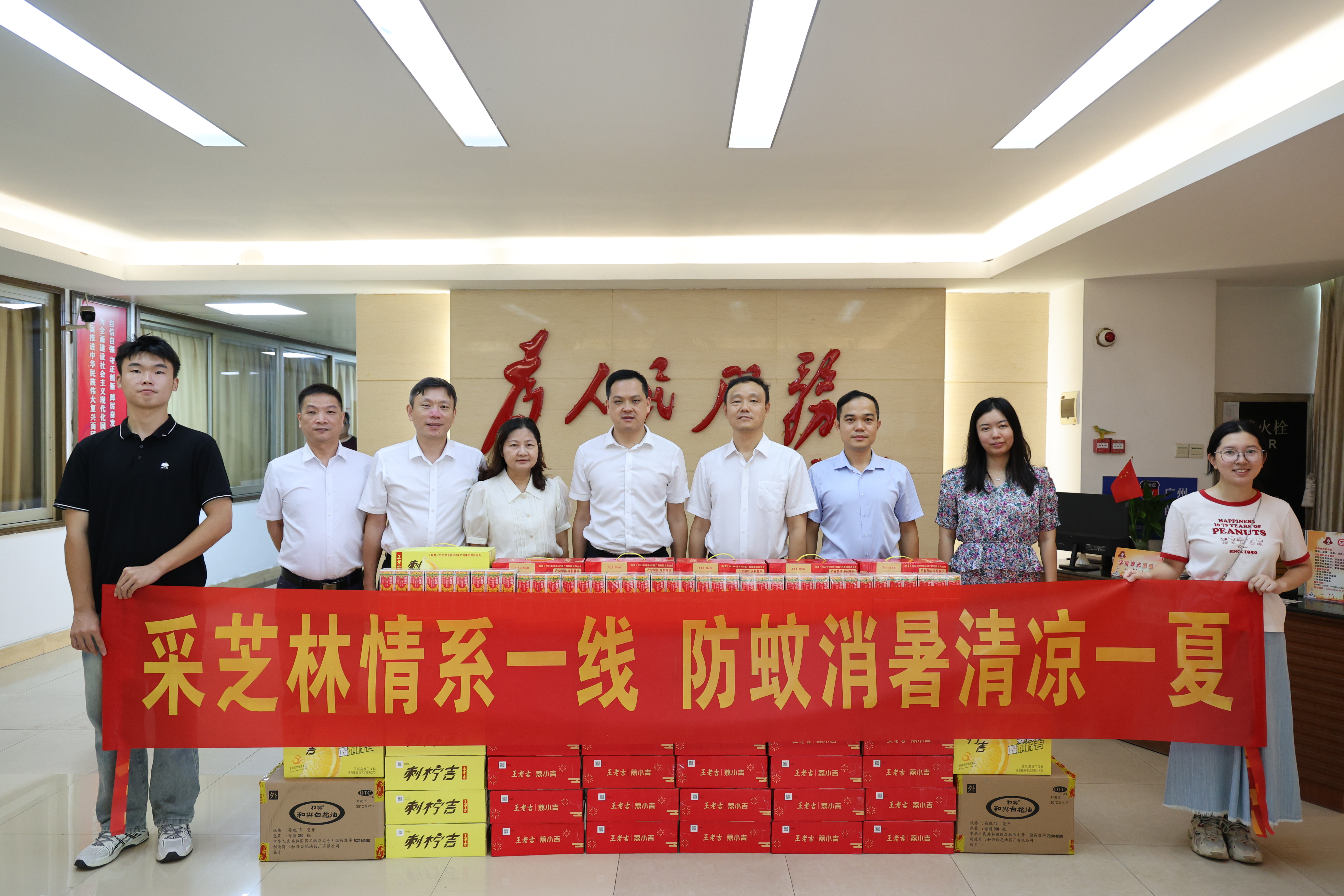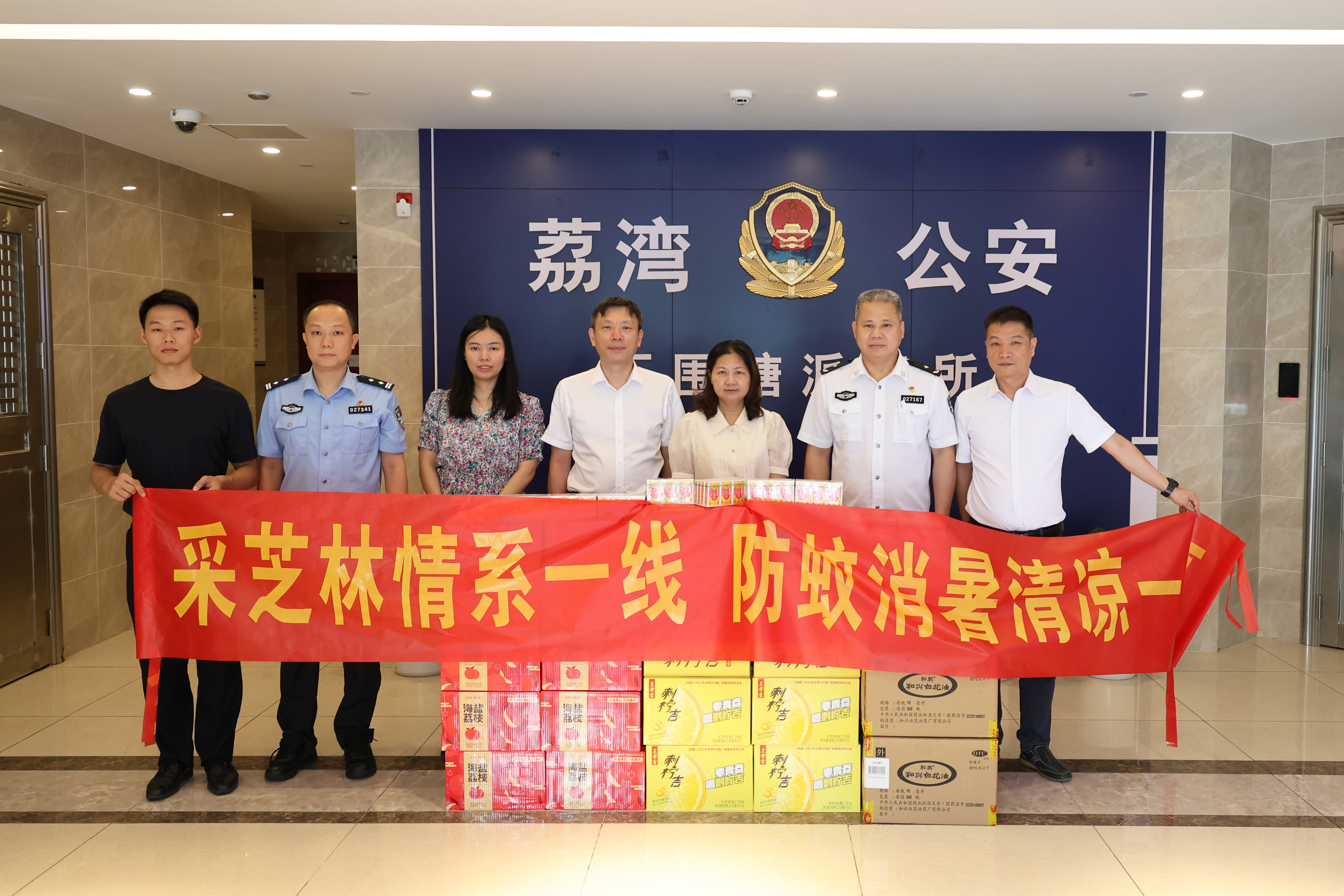 立秋时节,广州的天气依旧复杂多变,既是烈日炎炎,又是阴雨不断,让近期“两热”疫情反复出现。为关爱高温酷暑坚守岗位的基层劳动者及助力“两热”防控工作,8月15日和18日,采芝林药业到荔湾区石围塘街道开展“采芝林情系一线 防蚊消暑清凉一夏”慰问活动,分别为辖区工作者、环卫工人、民警、交警及消防员等一线群体送去防暑防蚊物资与贴心关怀。公司党委书记、董事长王健松,党委副书记、工会主席蔡志伟与相关部门负责人参加慰问活动,石围塘街党工委副书记杨丽冰等陪同慰问。