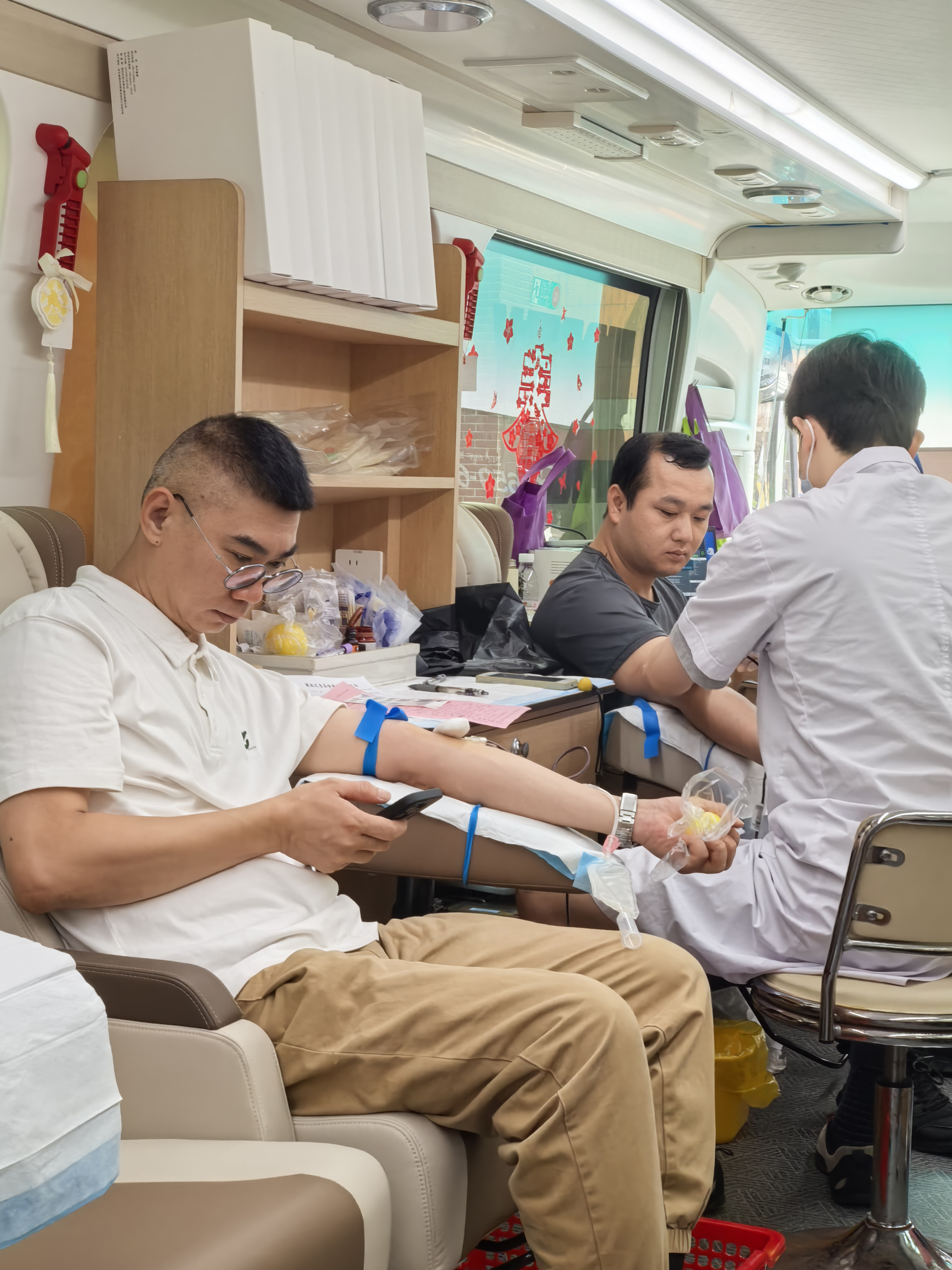 活动现场,献血职工在医护人员的引导下,依次完成信息登记、血液初筛、健康检查等流程,整个献血过程严谨规范。据悉,这5位职工中,有的已连续三年参加石围塘街无偿献血活动,他们毫不犹豫地撸起袖子,用实际行动诠释了青春担当。