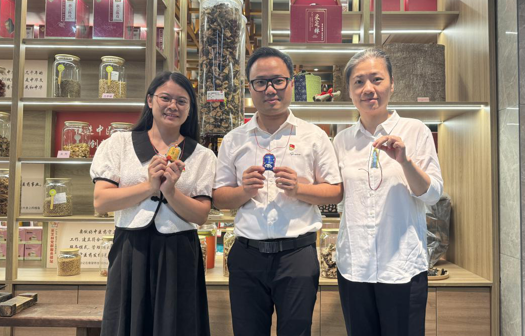 纪检干部制作香囊