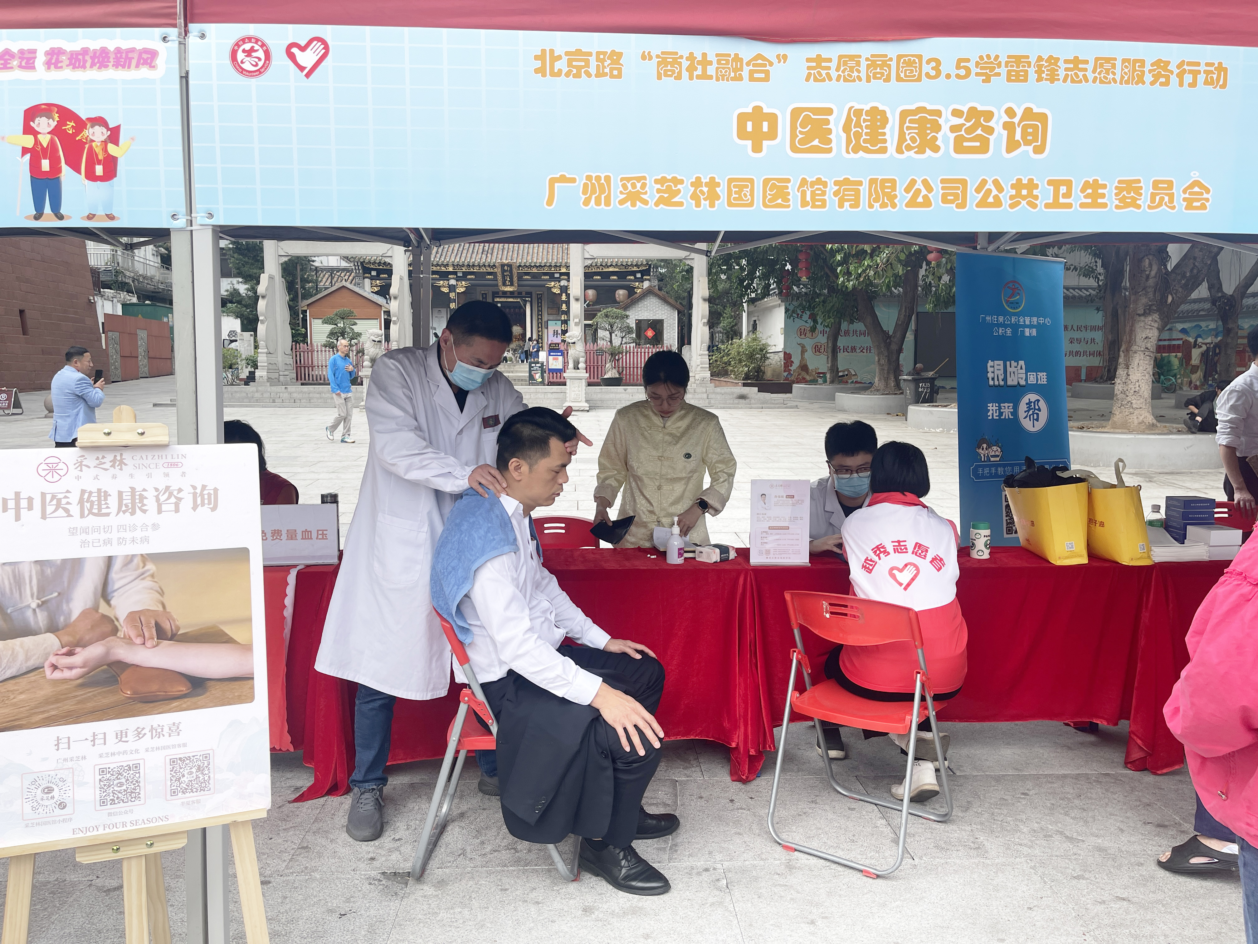 3月11日下午,采芝林药业国医馆党支部“先锋红”服务队到中山四路城隍庙广场参加北京路“商社融合”志愿商圈学雷锋志愿服务活动,现场为市民游客提供健康咨询服务,深受好评!