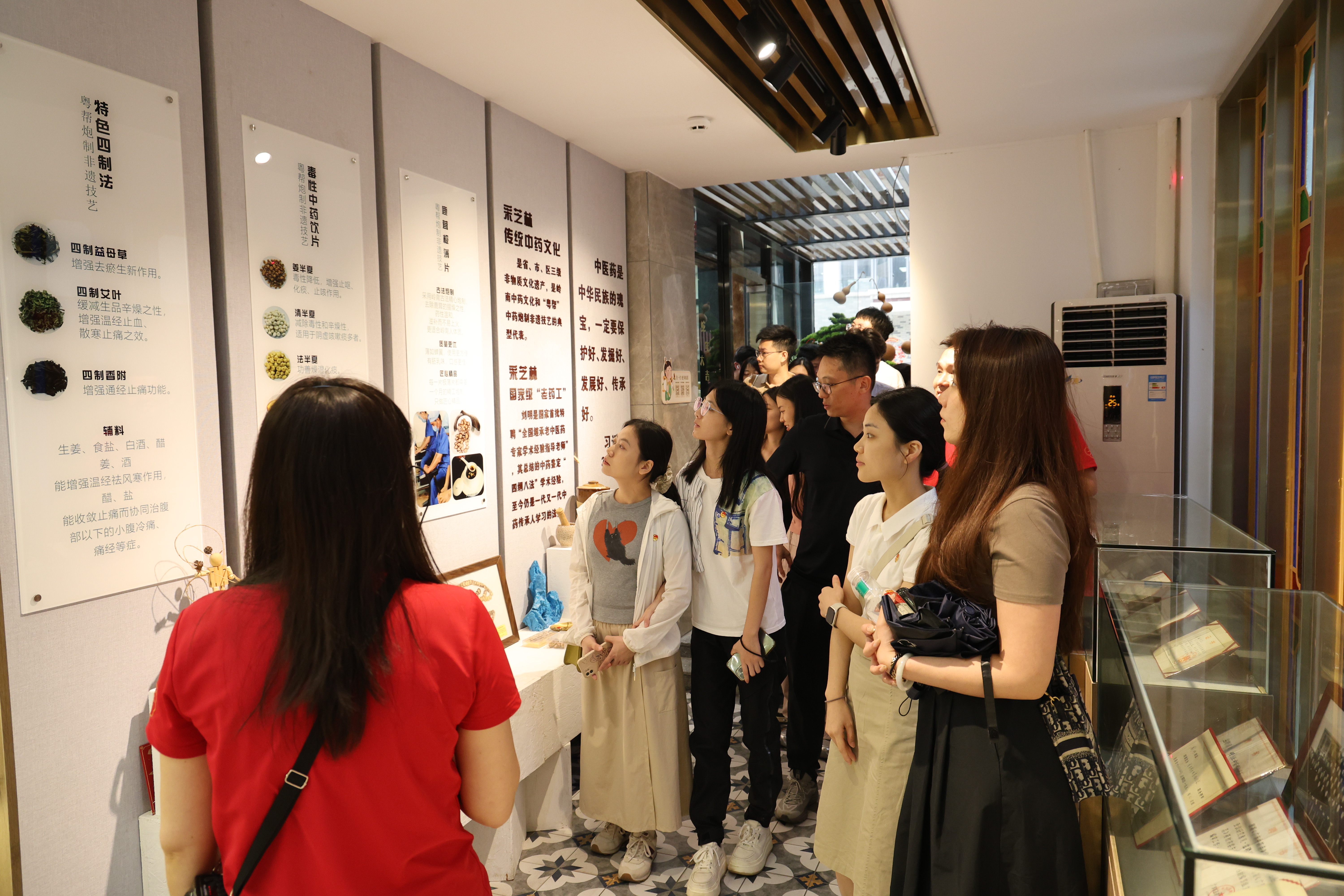 总厂团委一行先后参观了采芝林中药文化博物馆、采芝林中药非遗文化体验馆和心聚采红党建文化园。通过珍贵中药材标本、传统制药器具和图文展板的生动展示,团员青年们深入了解了岭南中医药的发展历程和“采芝林”作为百年中华老字号的匠心传承故事,切身感受了中医药文化博大精深的独特魅力。