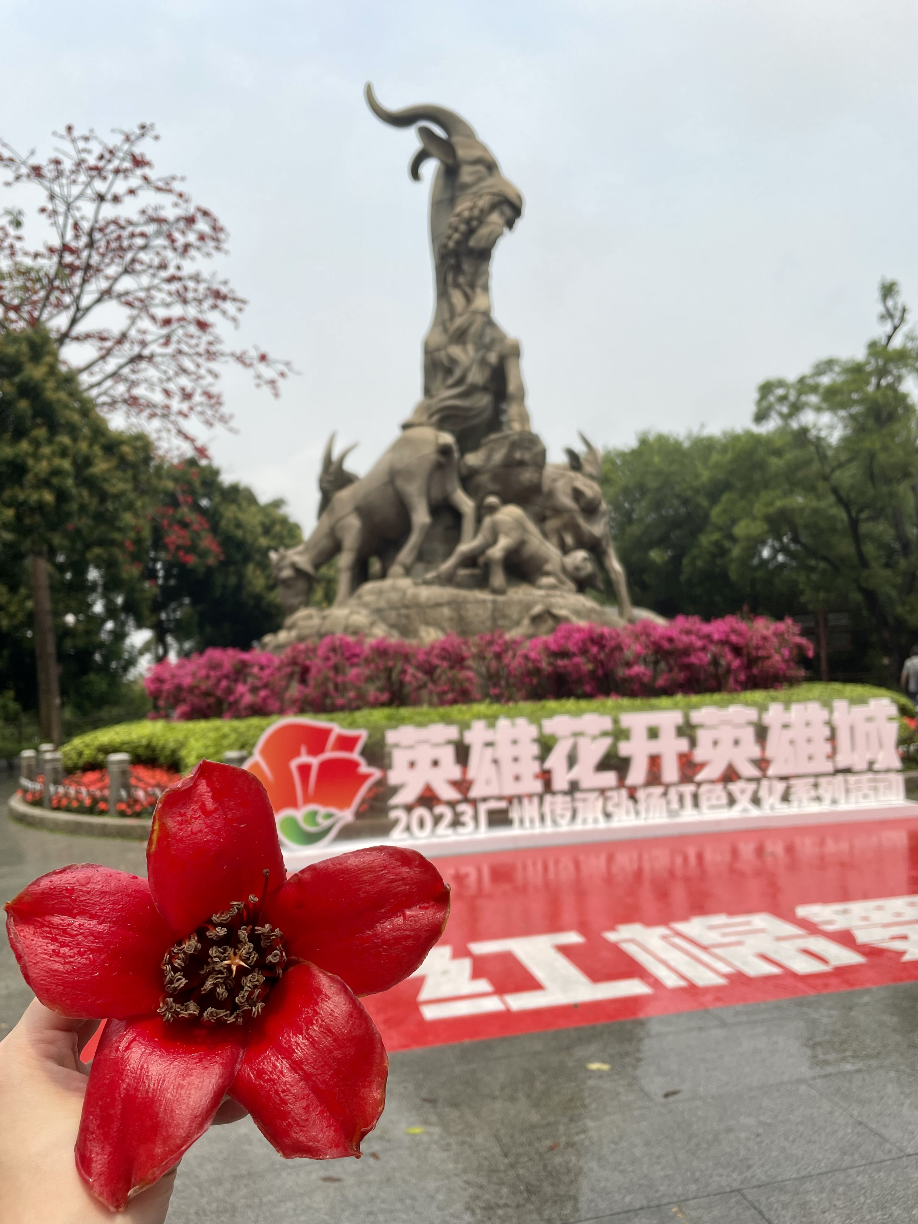 徒步期间,团员青年们还观赏了越秀公园的木棉花,并到五羊雕像打卡,了解“英雄城”的红色故事。木棉是广州巿市花,每逢早春三月盛开,花红如炬似火,被誉为“英雄花”。作为一座英雄的城市,广州无数革命先辈在这里用青春、热血和生命,浇灌了英雄花、浇筑了英雄城,换来了今天的和平与美好。