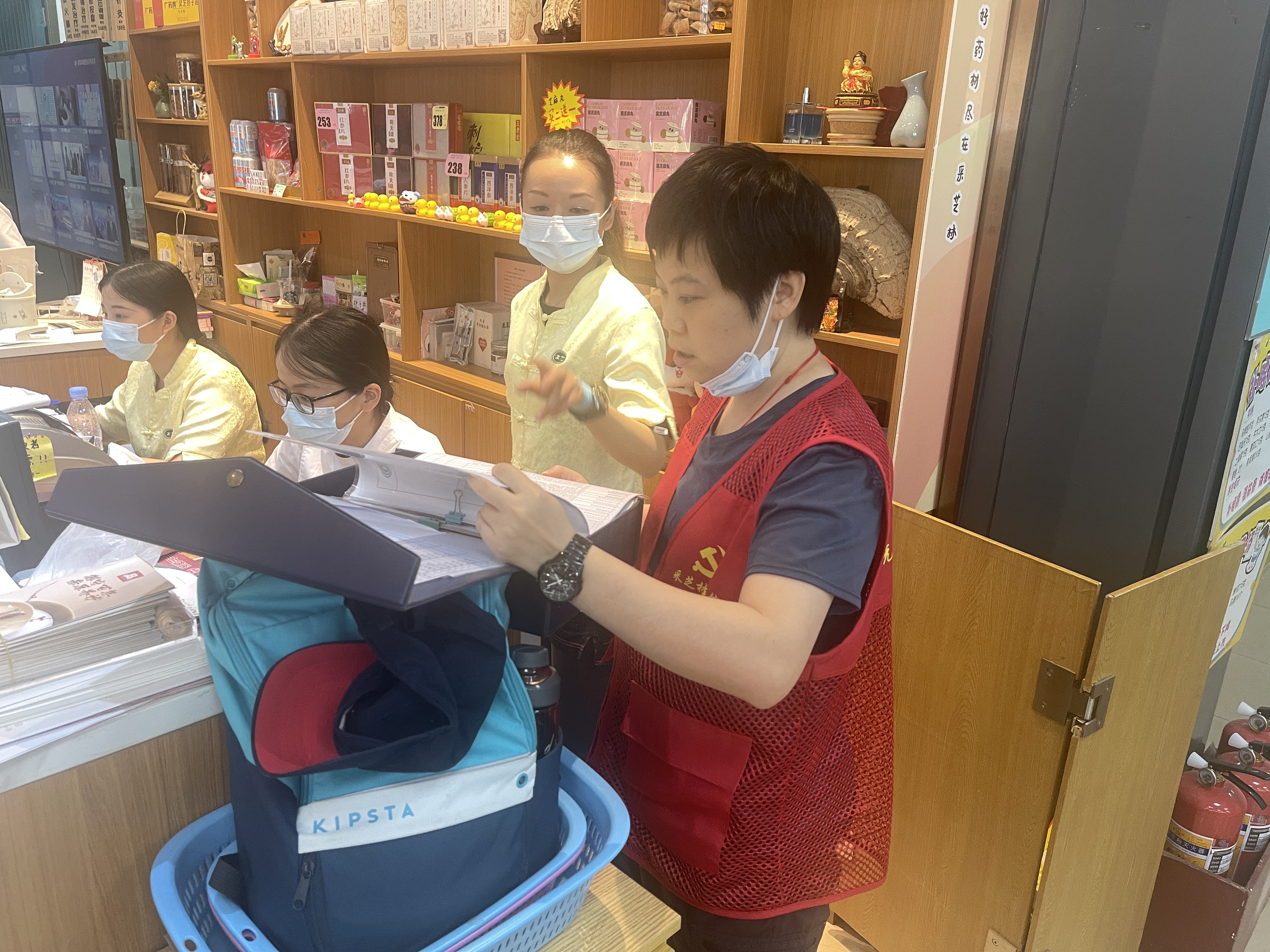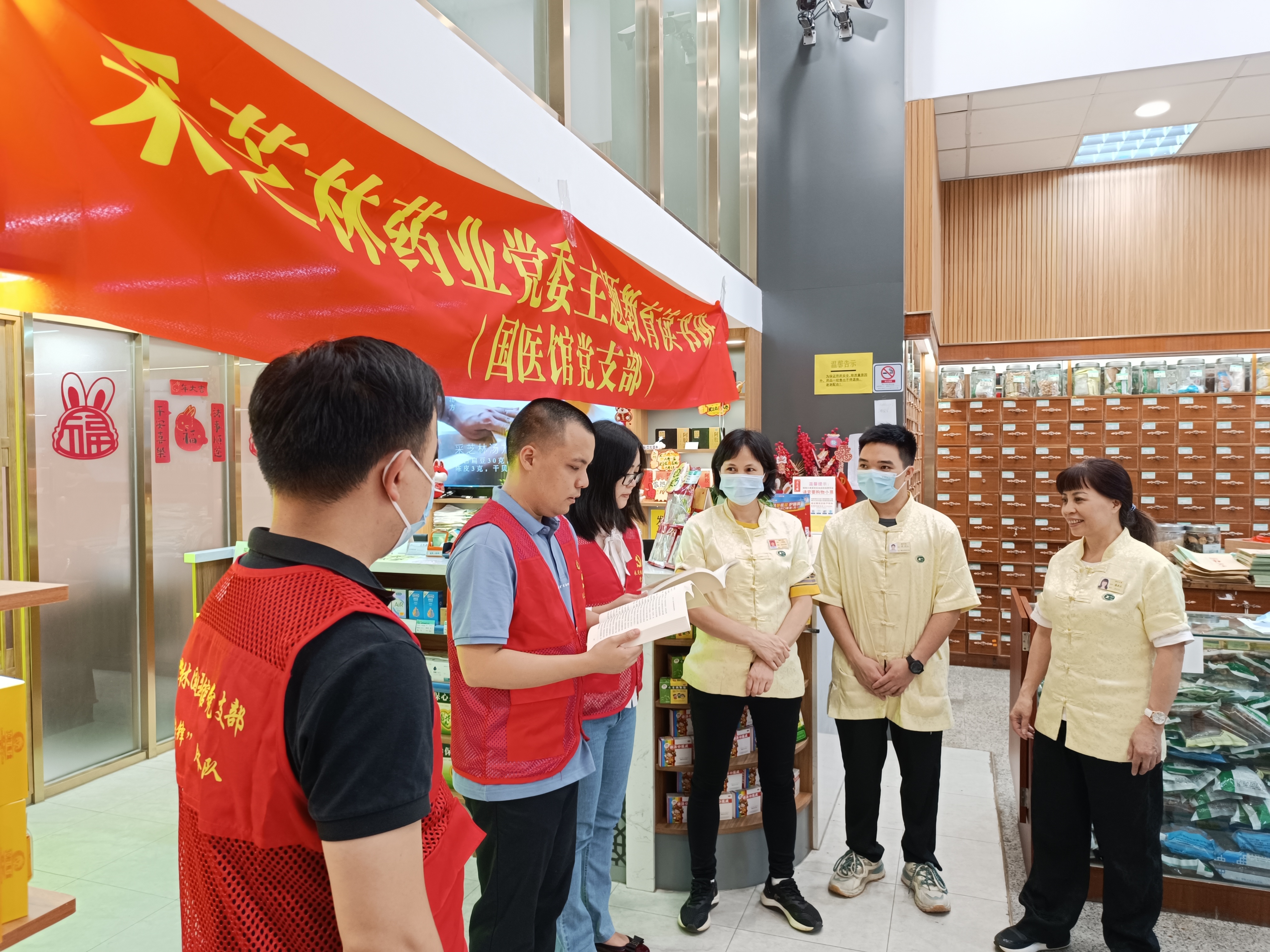国医馆北商大药房内,“先锋红”代表正在领学、传学